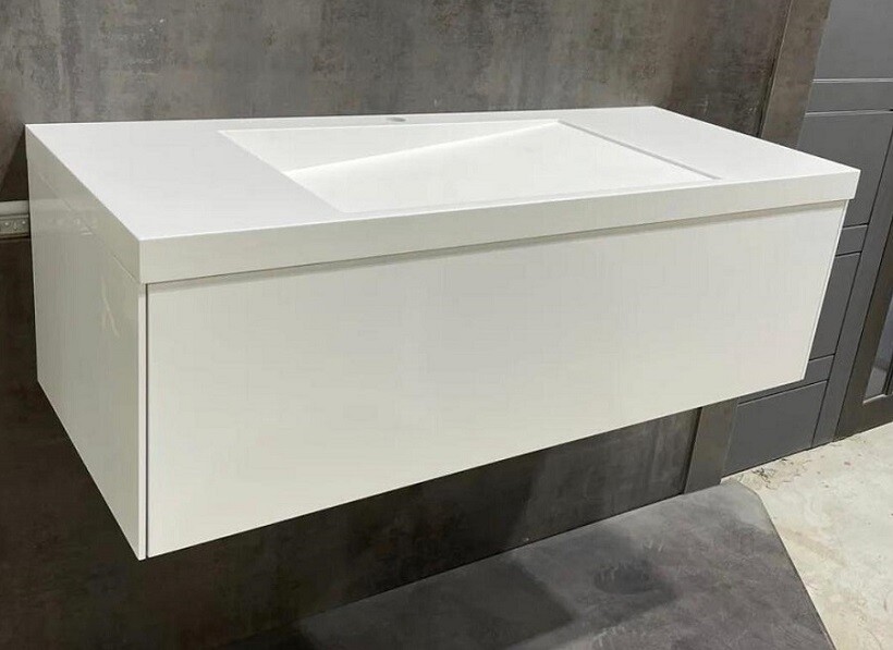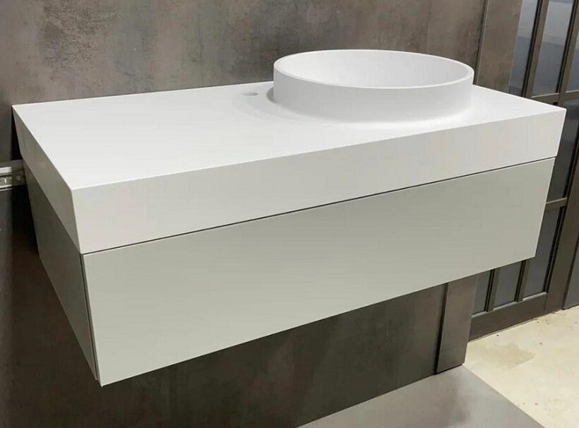 Белая столешница из искусственного камня с тумбой МДФ
