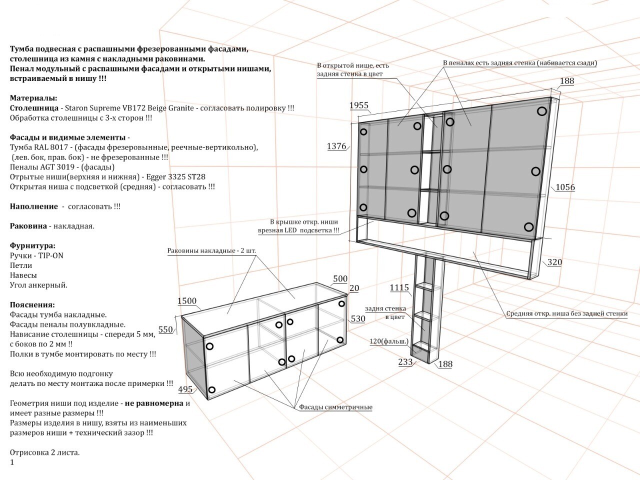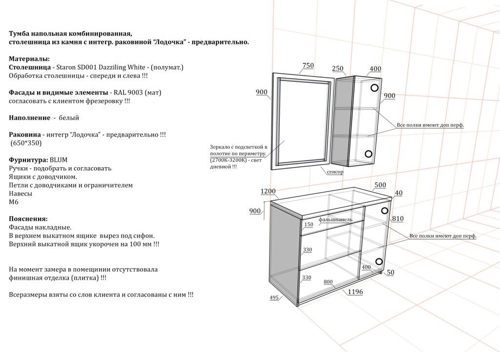 Тумба с раковиной и столешницей для ванной комнаты на заказ